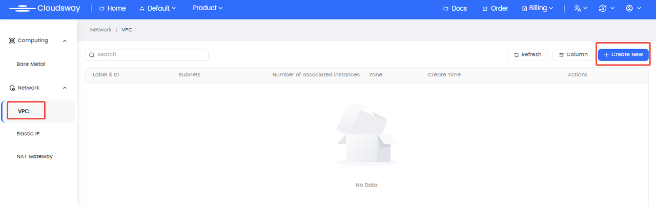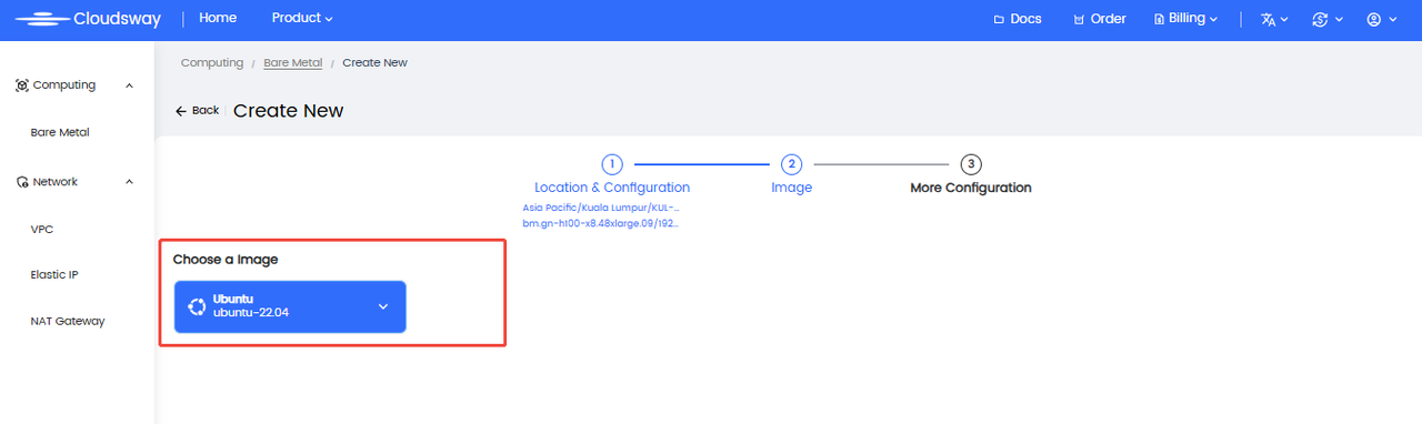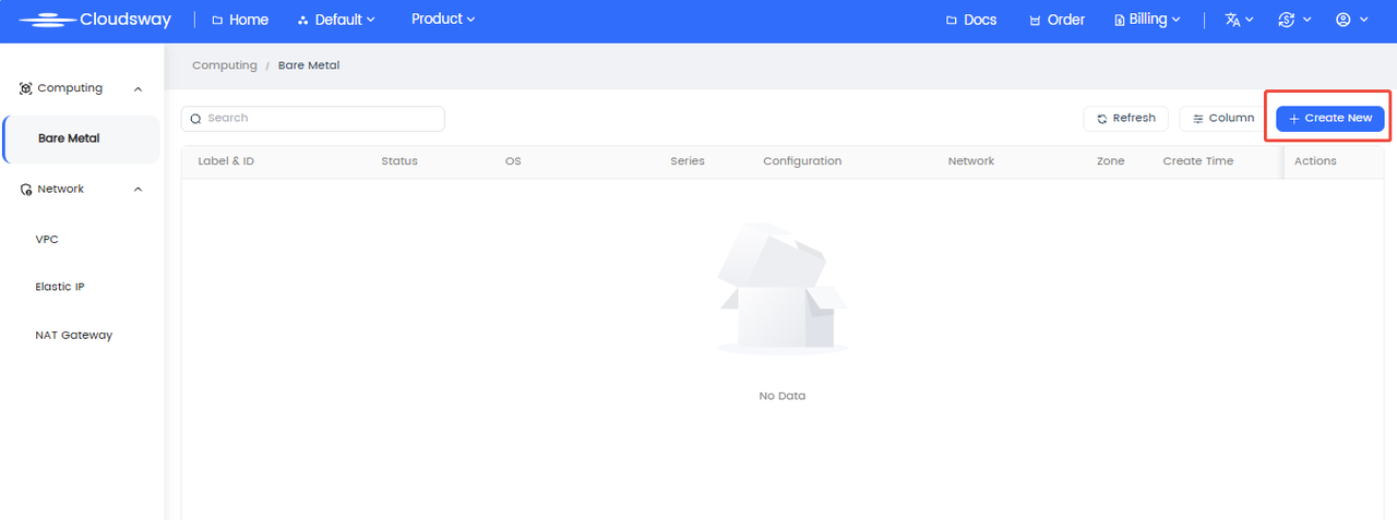 - Log in to the Console: Navigate to the "Bare Metal" product page (https://console.cloudsway.net/cloudsvm/bms/server) and click "Create".