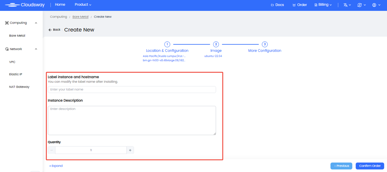 System Disk & Data Disk: The bare metal server provides the entire machine, no selection needed.